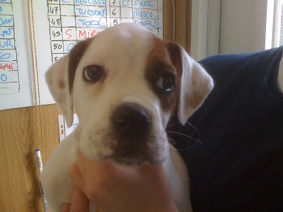 Apagi Crapule Chien Croisé Boxer à La Robe Blanc Et Marron